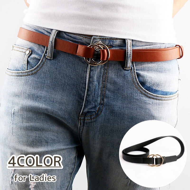 ベルト レディース PUレザー シンプル 無地 リング ゴールドカラー おしゃれ かわいい 合皮 女性 大人女子 婦人 カジュアル ブラック ブラウン