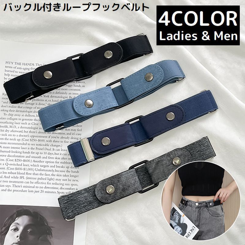 ゴムベルト レディース メンズ 男女兼用 ノーバックル 裏技ベルト 伸縮 フリーサイズ トイレ楽 簡単装着 無地 カジュアル