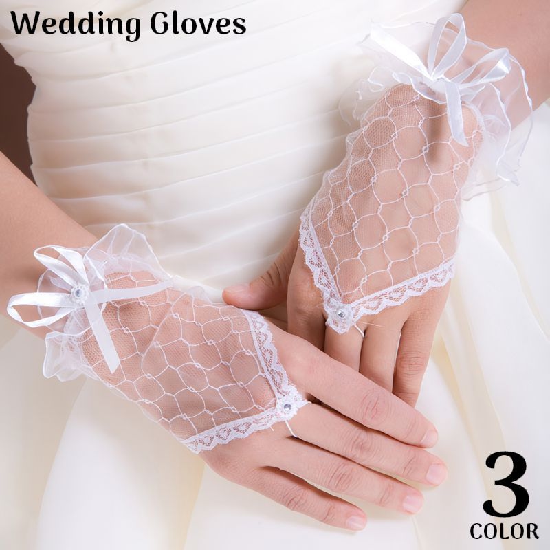 ウエディンググローブ 女性 花嫁 ブライダル 手袋 ショート 指なし レース フリル リボン 結婚式 パーティー 披露宴 二次会