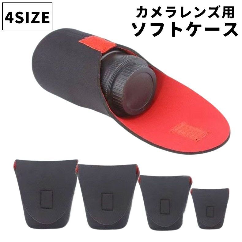 レンズケース ソフトレンズケース 単品 1個 カメラレンズ 収納ポーチ 保護カバー 一眼レフ ミラーレス 交換レンズ用 レンズポーチ 面ファスナー 収