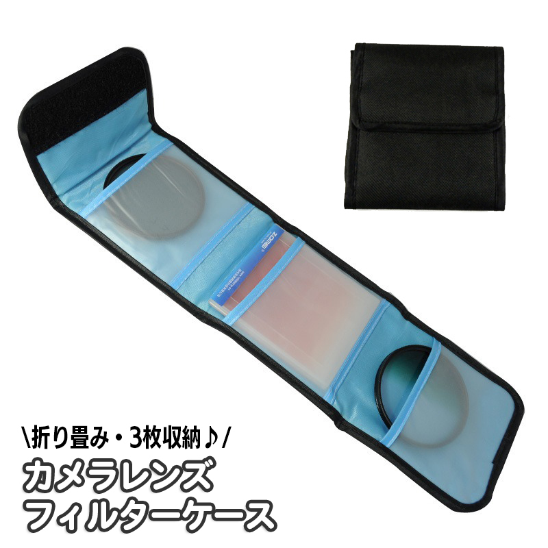 カメラレンズフィルターケース フィルターポーチ フィルターバッグ 3ポケット 折りたたみ 折り畳み レンズフィルター収納バッグ 持ち運び 簡単 便利