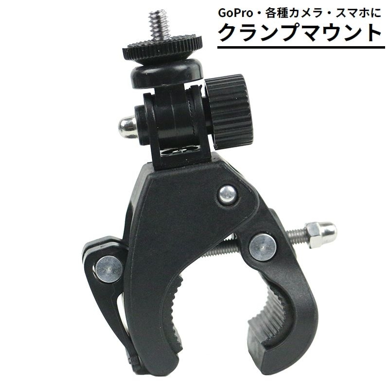 GoPro用マウント クランプ カメラスタンド スマホホルダー 自転車 オートバイ バイク 4分の1インチネジ ブラケット 固定