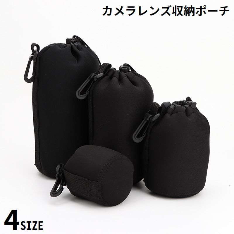 カメラレンズケース レンズポーチ 保護カバー 耐衝撃 ソフトクッション 一眼レフ ミラーレス 防水 巾着型 コードロック フック付き