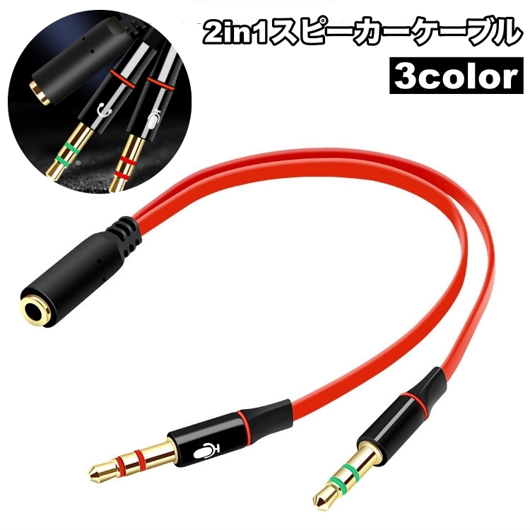 スピーカーケーブル 変換ケーブル 2in1 アダプターケーブル 単品 オーディオ機器 オーディオケーブル ヘッドホン マイク イヤホン ヘッドセット
