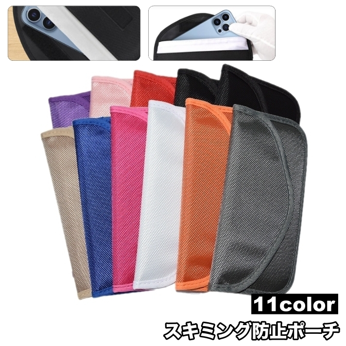 スキミング防止ポーチ RFID スマホ入れ カード入れ 面ファスナー マジック テープ シンプル おしゃれ スタイリッシュ 便利