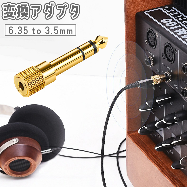 変換アダプタ 6.35mm to 3.5mm 変換プラグ ミニプラグ ステレオ コネクタ アダプター イヤホン ヘッドフォン ジャック オーディオ ギ