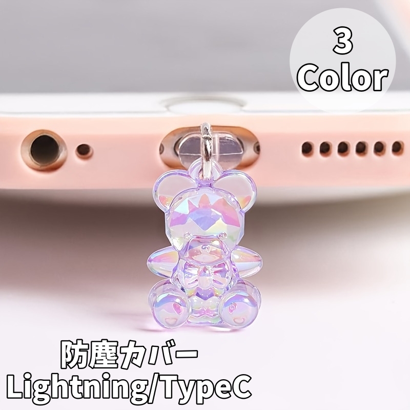 防塵カバー コネクトカバー 防塵キャップ 充電ジャックカバー イヤホンジャック スマホ関連雑貨 クマ クリア 透明 スマホアクセサリー 充電口 充電穴