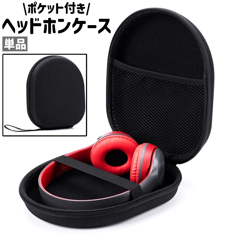 ヘッドホンケース 単品 ヘッドフォンケース ヘッドホンボックス ポケット付き ファスナー チャック ジッパー オックスフォード メッシュ シンプル ヘ