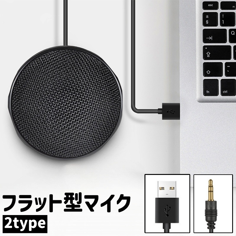 マイク USB2.0 3.5mmプラグ フラット型 全指向性 プラグアンドプレイ式 置き型 円形 丸型 ラウンド シンプル 持ち運び パソコン ノート