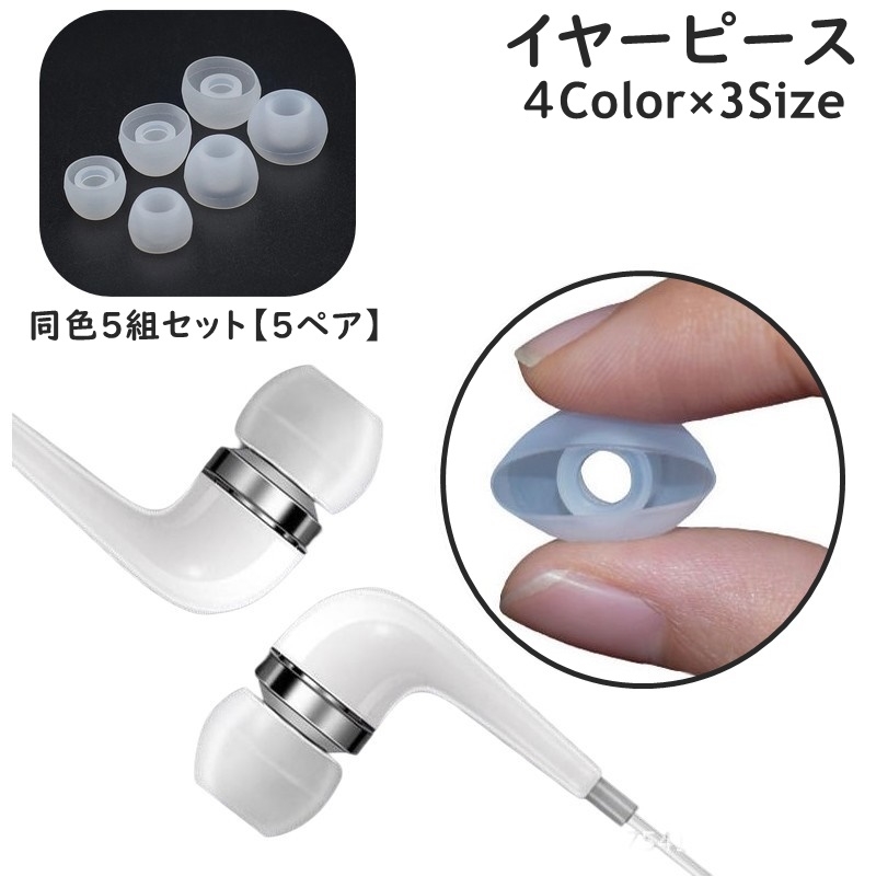 イヤーピース イヤーチップ 5ペア 同色5組セット 両耳分 イヤホン カバー キャップ 交換用 内径4.5mm 外径14mm 12mm 10mm シン