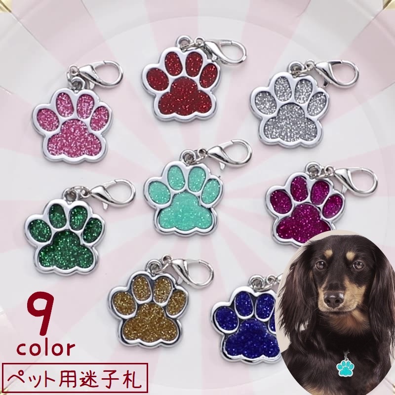 ペット用迷子札 名札 ネームタグ ネームチャーム 犬猫兼用 ドッグタグ キャットタグ 犬 猫 ペット用品 ペットグッズ 首輪アクセサリー 肉球型 迷子