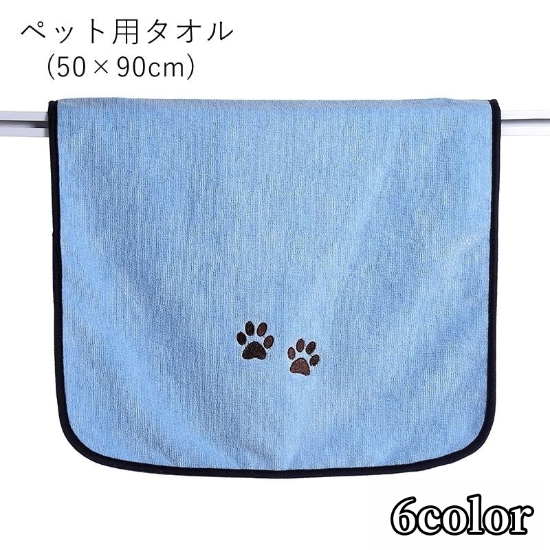 ペット用タオル ペットタオル ドライタオル 犬 イヌ ネコ 猫 ペットグッズ ペット用品 吸水 長方形 刺繍 バイアステープ付き 肉球柄 ブルー ピン