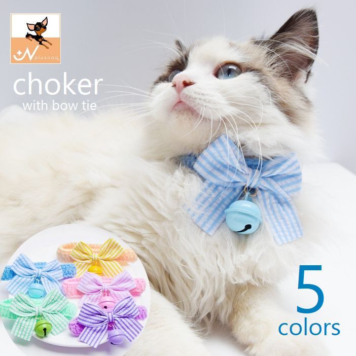 ペットチョーカー 猫 小型犬 うさぎ 手編み風 首飾り サイズ調節可 鈴 蝶ネクタイ リボン ストライプ ペット用品 イヌ ネコ ウサギ ペットグッズ