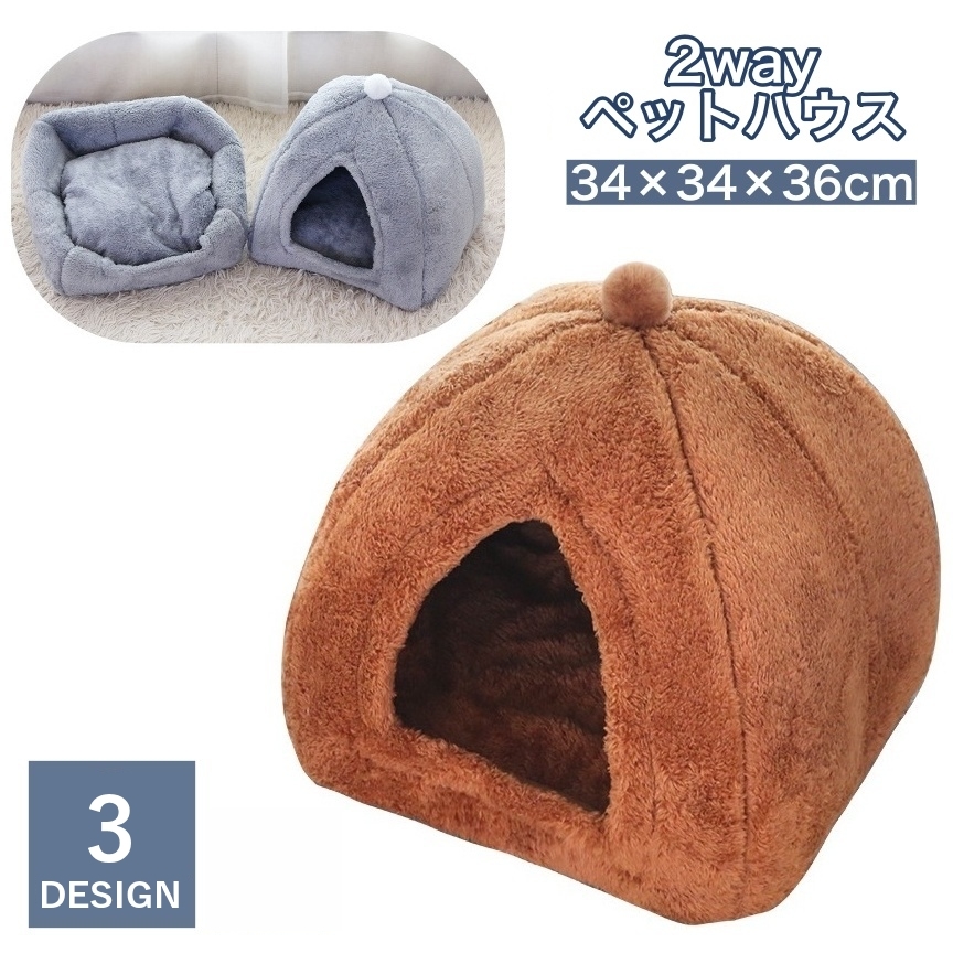 ペットベッド ペットハウス 猫用 犬用 ドーム型 カドラー 2way キャットハウス ドッグハウス 滑り止め付き 室内用 寝具 寝床 暖かい ふかふか