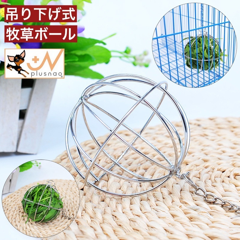 牧草ボール ボール型 吊り下げ式 小動物用食器 ウサギ用 ペット用品 エサ入れ 牧草入れ 給餌ボール 球体 フック付き うさぎ モルモット ペットグッ