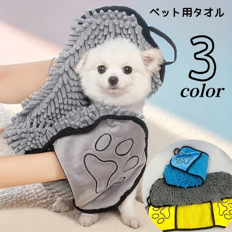 ペット用タオル バスタオル ボディタオル ペット用品 トリミング用品 ペットグッズ 犬 イヌ いぬ 猫 ネコ ねこ 厚手 手袋型 ループ付き 吸水 速