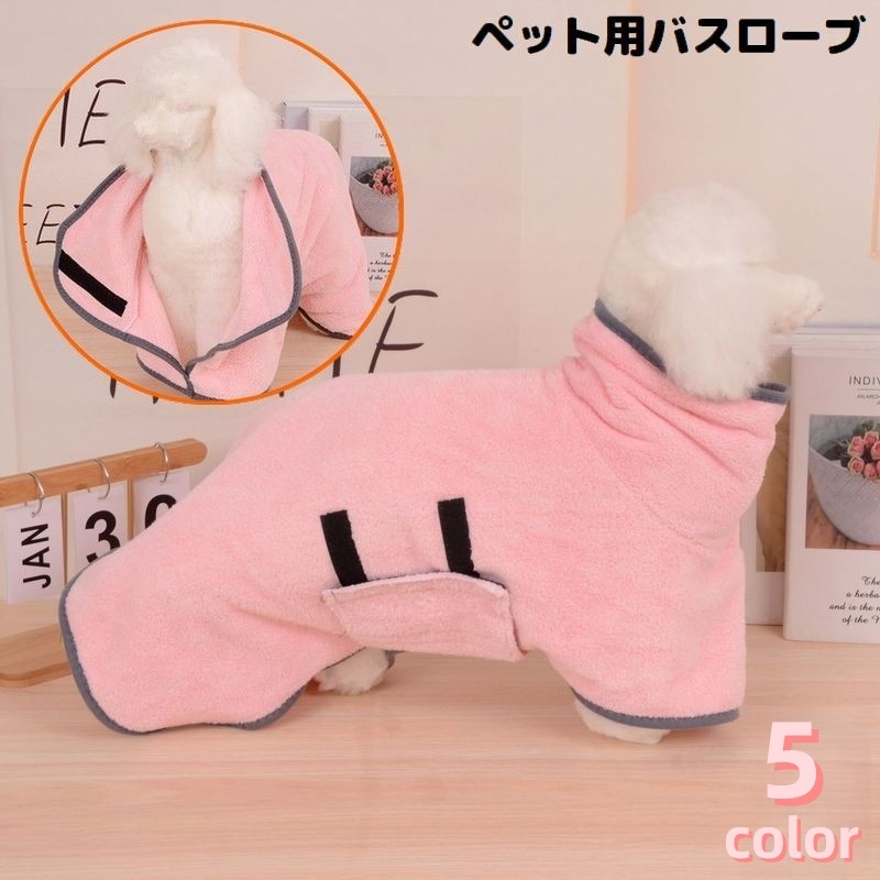ペット用バスローブ バスタオル ガウン 小型犬 中型犬 猫 厚手マイクロファイバー 吸水 速乾 体拭き 足拭き お風呂 シャワー