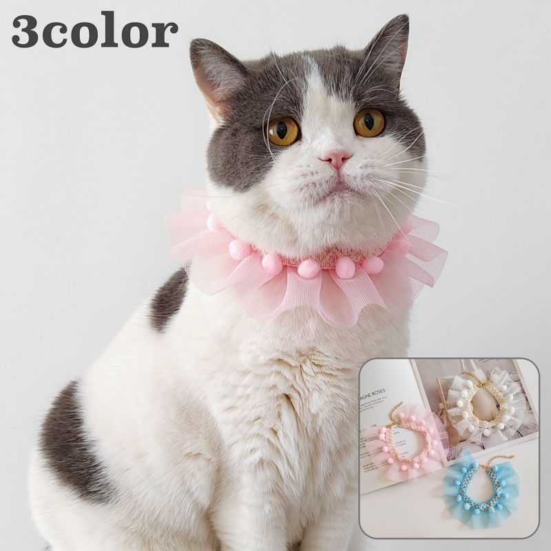チョーカー 首飾り 猫用 犬用 ペット用 アクセサリー レース チュール メッシュ ぽんぽん 可愛い おしゃれ おめかし ペットグッズ