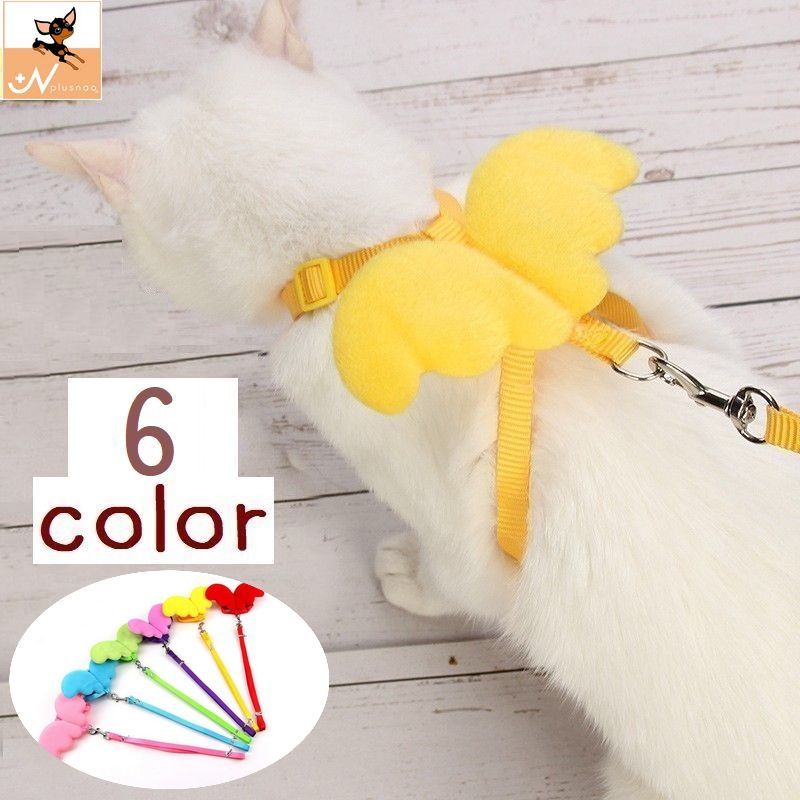 ハーネスリードセット 2点セット 猫用ハーネス 猫用品 ペット用品 胴輪 天使の羽付き 無地 サイズ調節可能 ワンタッチバックル かわいい お散歩 お