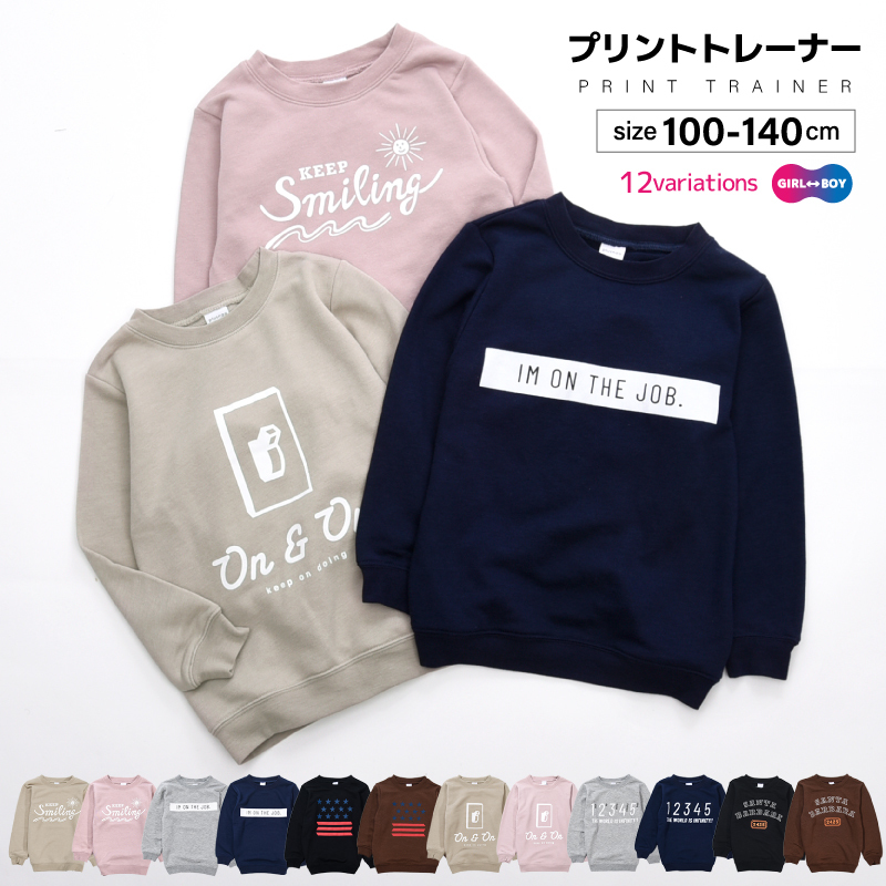子供服 トレーナー プリント 裏毛 長袖 男の子 女の子 キッズ ジュニア スウェット トップス プルオーバー ラウンドネック クルーネック 丸首 お