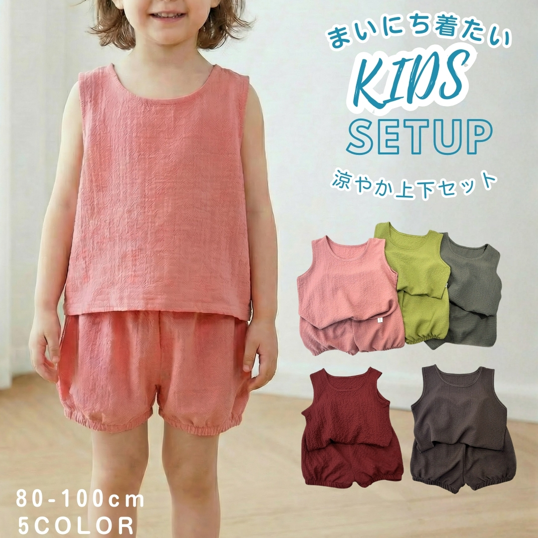 セットアップ タンクトップ ショートパンツ 上下セット キッズ 子供服 女の子 男の子 ノースリーブ 半ズボン 短パン ハーフパンツ ゴムウエスト 無