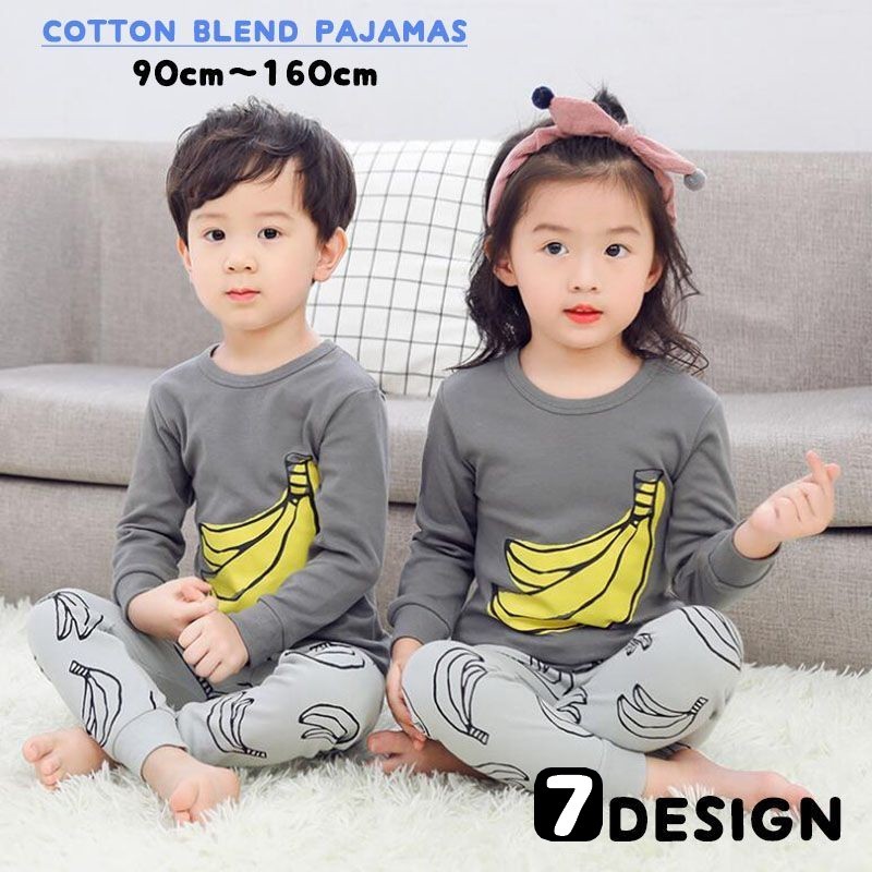 パジャマ ルームウエア キッズ ベビー ジュニア 男の子 女の子 長袖 長ズボン ロングパンツ 部屋着 セットアップ 子供用 カットソー クルーネック