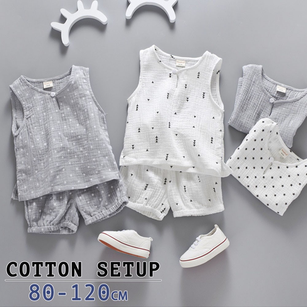 上下セット セットアップ ノースリーブ タンクトップ ショートパンツ 子供用 トップス ボトムス 半ズボン 短パン ウエストゴム ティアドロッププラケ