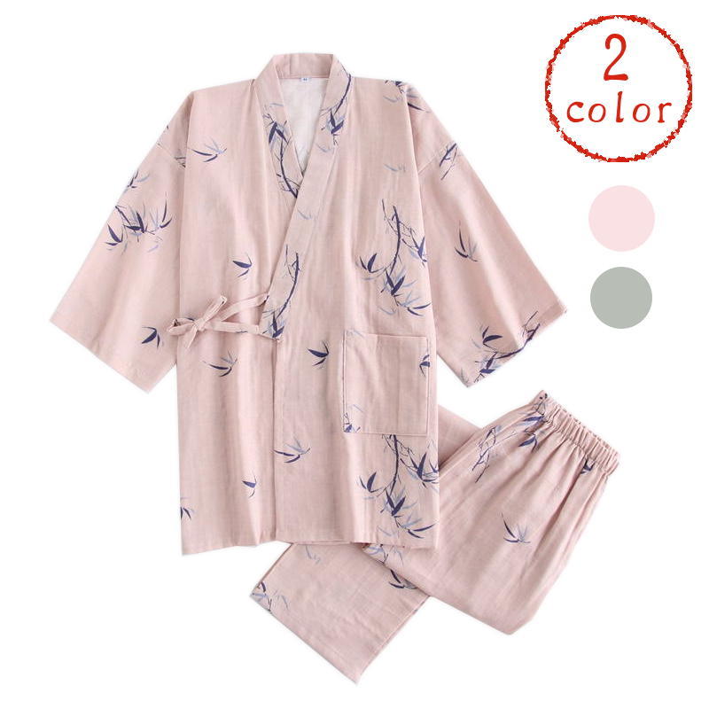 甚平 レディース メンズ 上下セット セットアップ 七分袖 長ズボン ロングパンツ 前開き ルームウェア 部屋着 パジャマ 和服 和風 和柄 薄手 プ