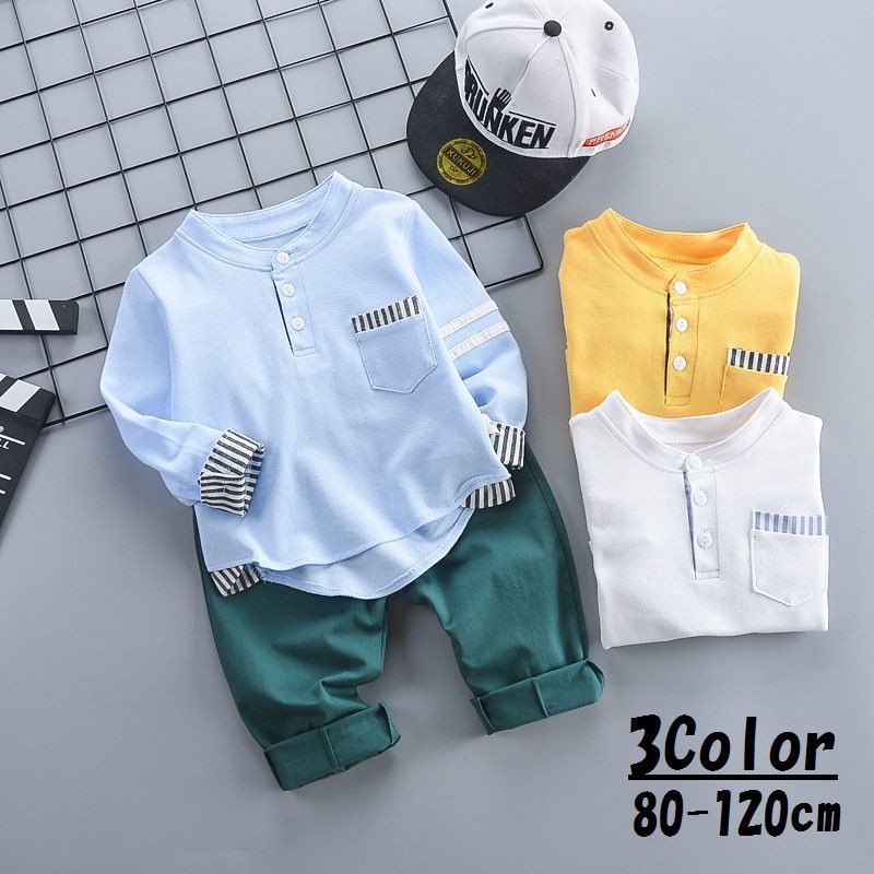 セットアップ キッズ ベビー 長袖 トップス 切り替え パンツ カジュアル 子供服 おしゃれ 80 90 100 110 120