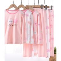 パジャマ 上下セット ルームウェア キッズ ジュニア 子供 女の子 長袖 ロングTシャツ ロングパンツ 長ズボン ボーダー柄 猫 ネコ 部屋着 女児