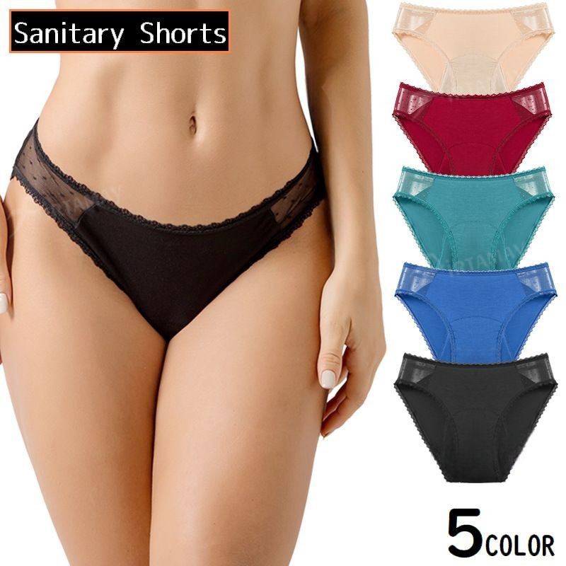 サニタリーショーツ レディース 下着 パンツ ヒップハンガー ローライズ フルバック レース スカラップ 伸縮性 通気性 吸汗