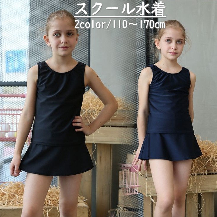スクール水着 セパレートタイプ 上下セット タンクトップ スカート付きショートパンツ スカッツ 女の子 キッズ ジュニア 子供用 女児 女子 ノースリ