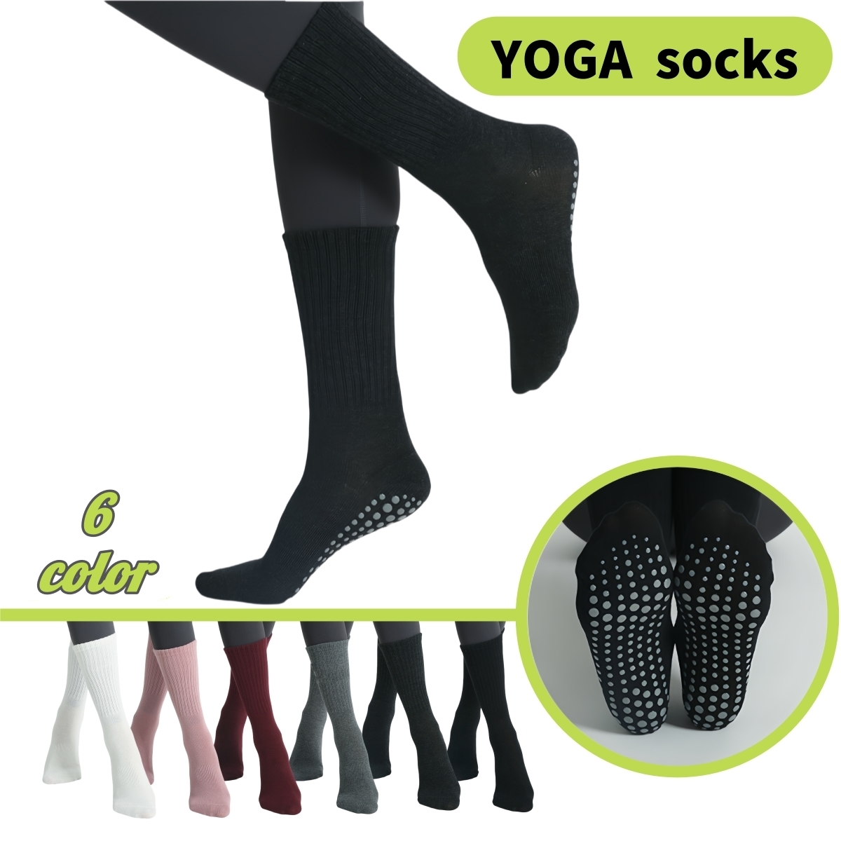 ヨガソックス 靴下 レディース 女性 くつ下 クルー丈 滑り止め シンプル 定番 無地 すべりにくい スポーツ トレーニング
