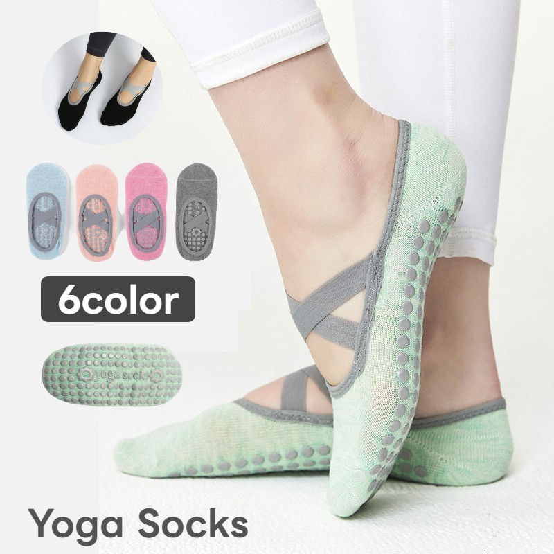 ヨガソックス 靴下 くつ下 レディース 女性用 滑り止め付き クロスバンド ショート丈 つま先あり ピラティス ヨガ スポーツ シンプル 無地