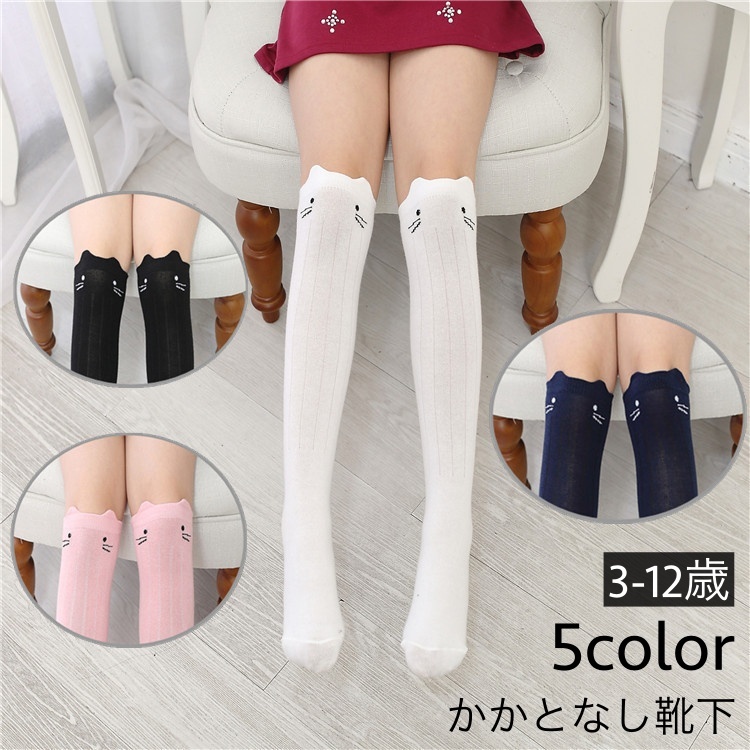 靴下 かかとなし ハイソックス ニーハイソックス キッズ ジュニア 子供用 女の子 くつ下 ネコ 耳付き かわいい おしゃれ お出かけ 普段使い