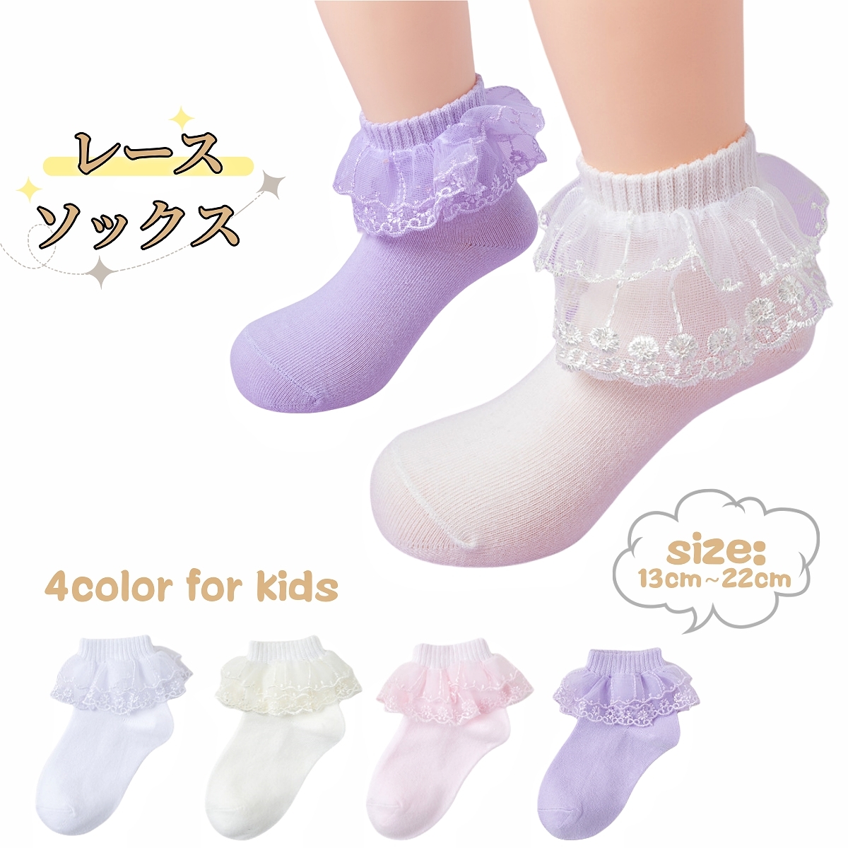 靴下 クルーソックス ショートソックス キッズ ベビー ジュニア 子供用 女の子 くつ下 フリル レース シンプル ソリッドカラー お洒落 可愛い 合