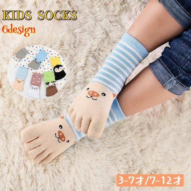 靴下 5本指ソックス くつ下 子供用 キッズ ジュニア 男の子 女の子 クルー丈 動物 アニマル 可愛い カジュアル ウサギ ペンギン ねこ 牛 ブタ