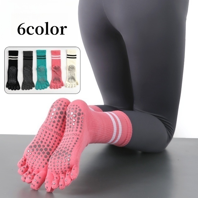 ヨガソックス 5本指ソックス 指あり 滑り止め付き スポーツソックス クルーソックス レディース 5本指靴下 シンプル スポーティ ライン カジュアル