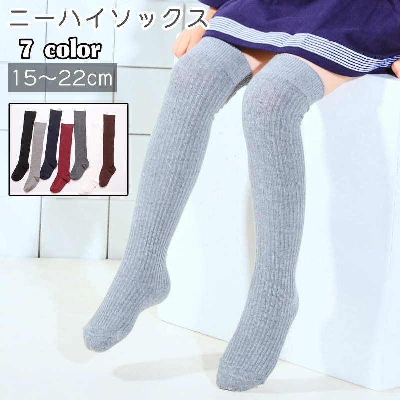 靴下 ニーハイソックス キッズ 子供 女の子 男の子 オーバーニーソックス くつ下 無地 グレー 黒 ネイビー シンプル 入学式 お出かけ