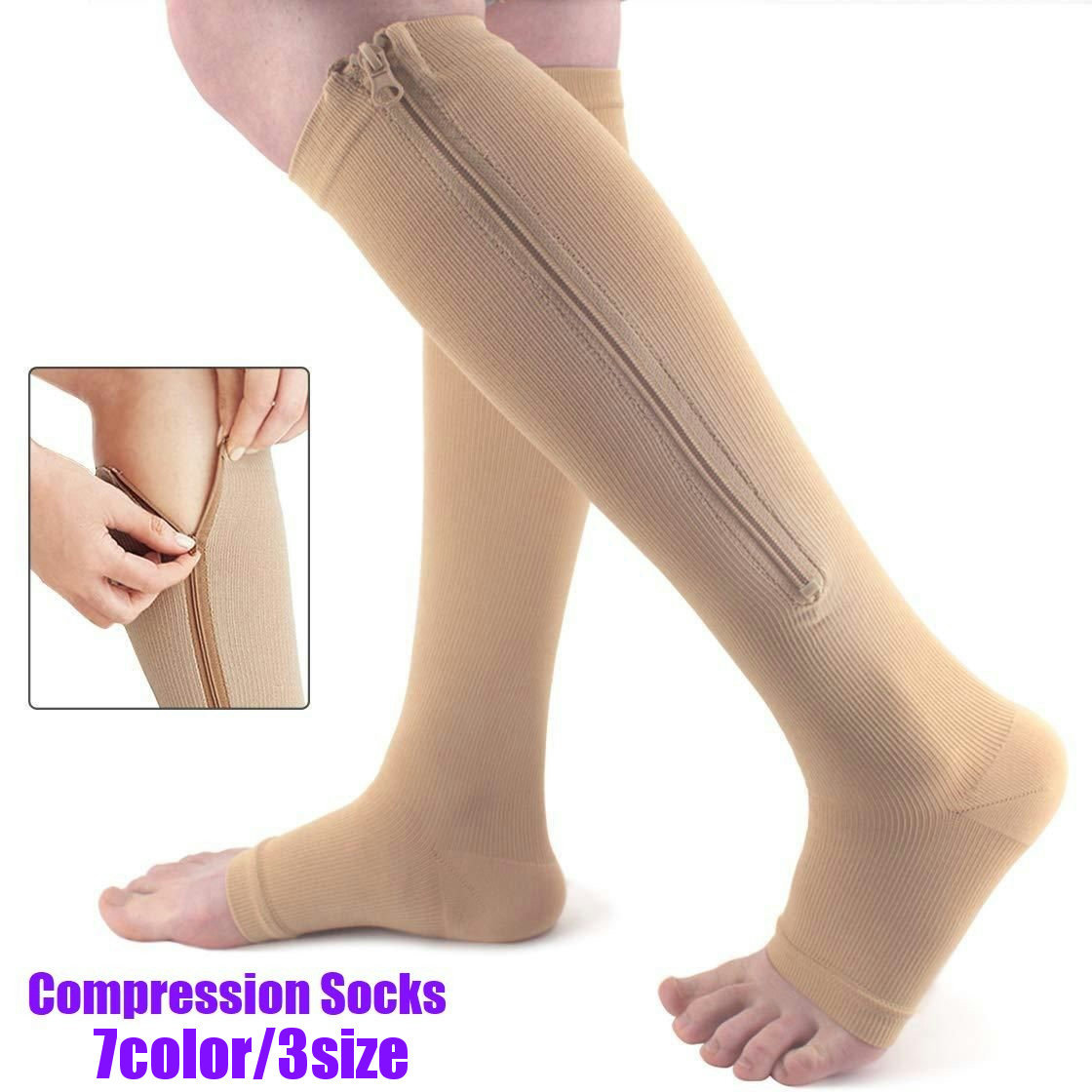 コンプレッションソックス スポーツ用着圧ソックス レディース メンズ 靴下 ソックス ジッパー付き オープントゥ スポーツウェア フィットネス 陸上