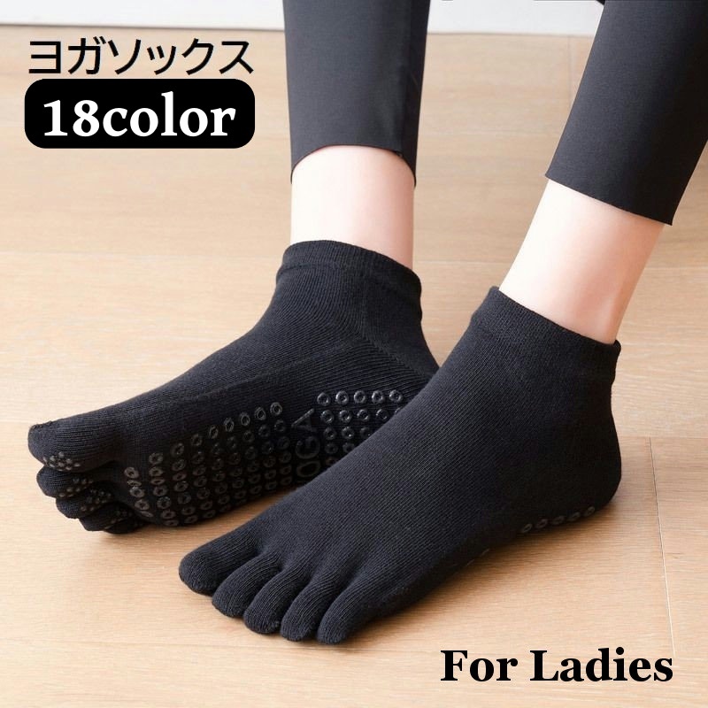 ヨガソックス レディース 女性 婦人 靴下 くつ下 スポーツソックス 5本指 ショート丈 くるぶし丈 滑り止め付き ブラック シンプル ヨガウェア フ