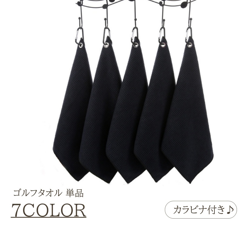 ゴルフタオル 単品 1枚 カラビナ付き ボール拭き クラブ拭き ボールクリーナー マイクロファイバー ワッフル地 フック付き シンプル 無地 おしゃれ