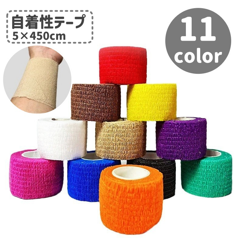 スポーツ用サポートテープ スポーツテープ 自着性テープ 伸縮テープ 同色3個セット 5cm テーピング サポートテープ 通気性 関節 肘 膝 手 指