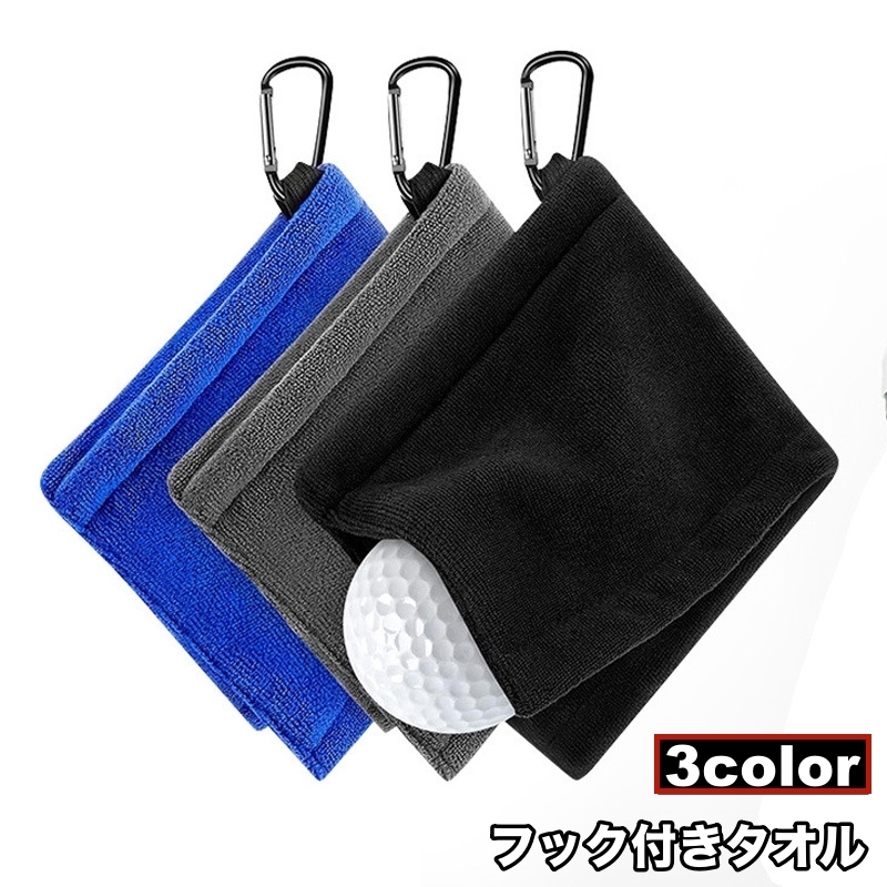 フック付きタオル ゴルフボールクリーナー ゴルフタオル クラブタオル ゴルフ用品 マイクロファイバー カラビナ ボール拭き お手入れ ケア 便利 コン