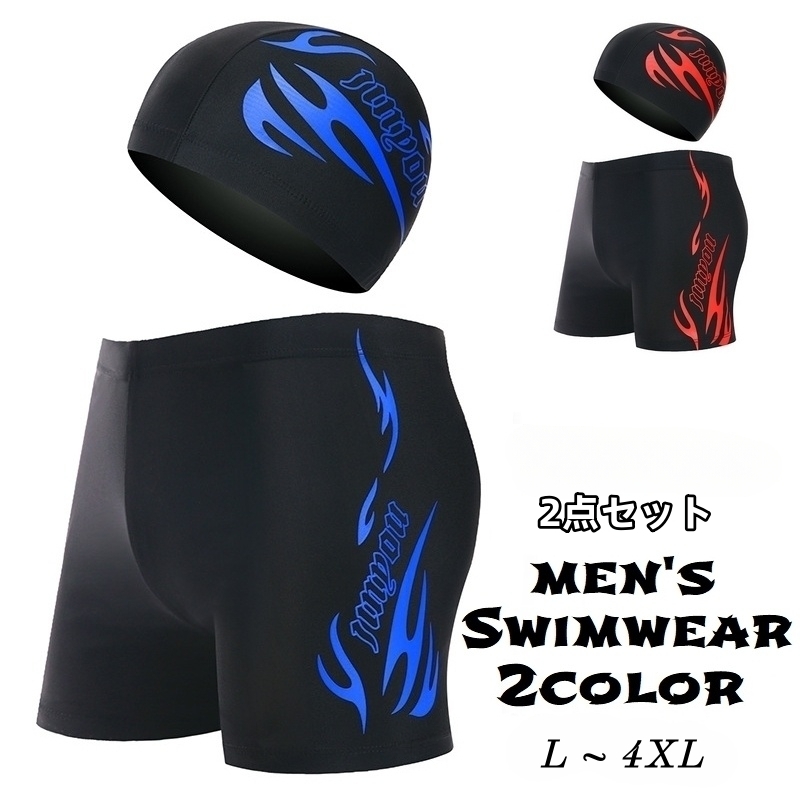 メンズ用スイムパンツ、スイムキャップの2点セットです。