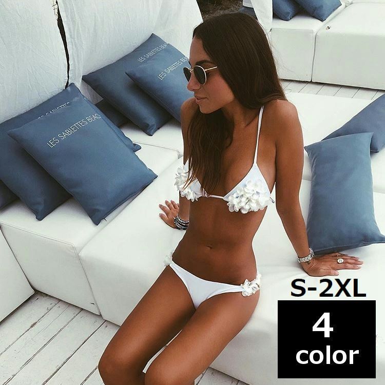 花ビラがデザインされたシンプルで可愛いビキニの水着です。