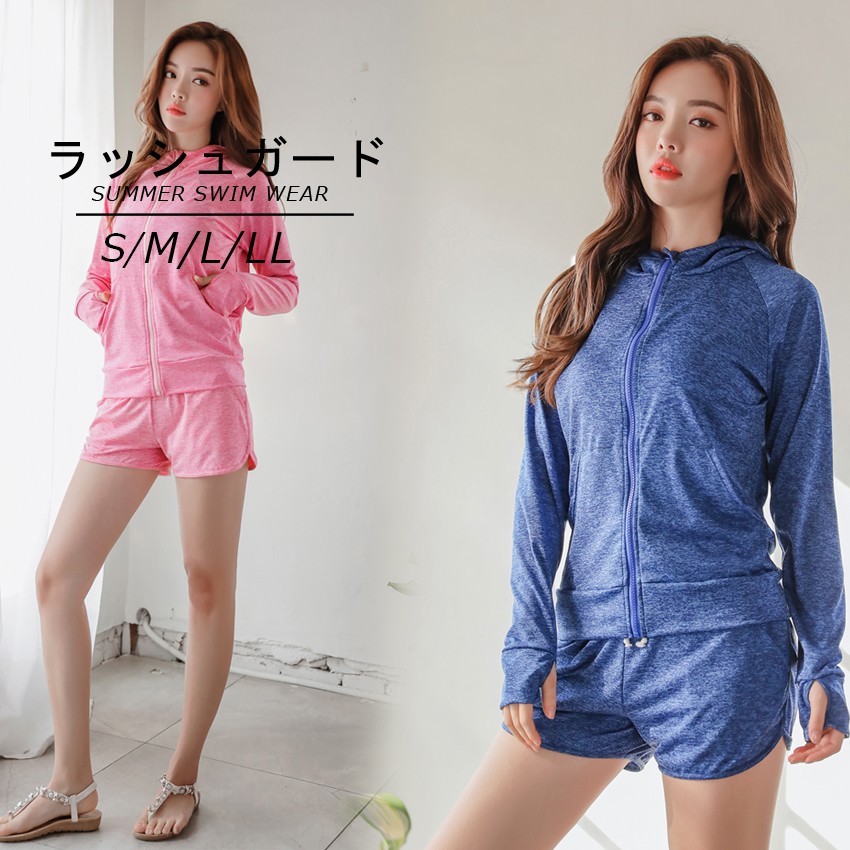 セットアップ 上下セット 2点セット ラッシュガード ラッシュパーカー スイムパンツ ジップアップ レディース UV対策 日焼け予防 フィンガーホール