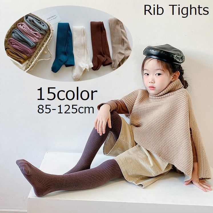 タイツ リブタイツ 子供服 子供用 キッズ ベビー 女の子 男の子 無地 シンプル 靴下 ソックス ストッキング インナー 下着 ホワイト ブラック