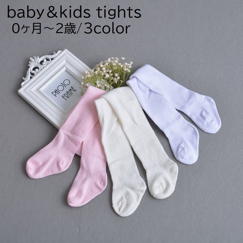 タイツ ベビー キッズ 赤ちゃん 女の子 男の子 乳児 幼児 子供用 レッグウェア 無地 単色 ホワイト ピンク 白 シンプル かわいい おしゃれ 着