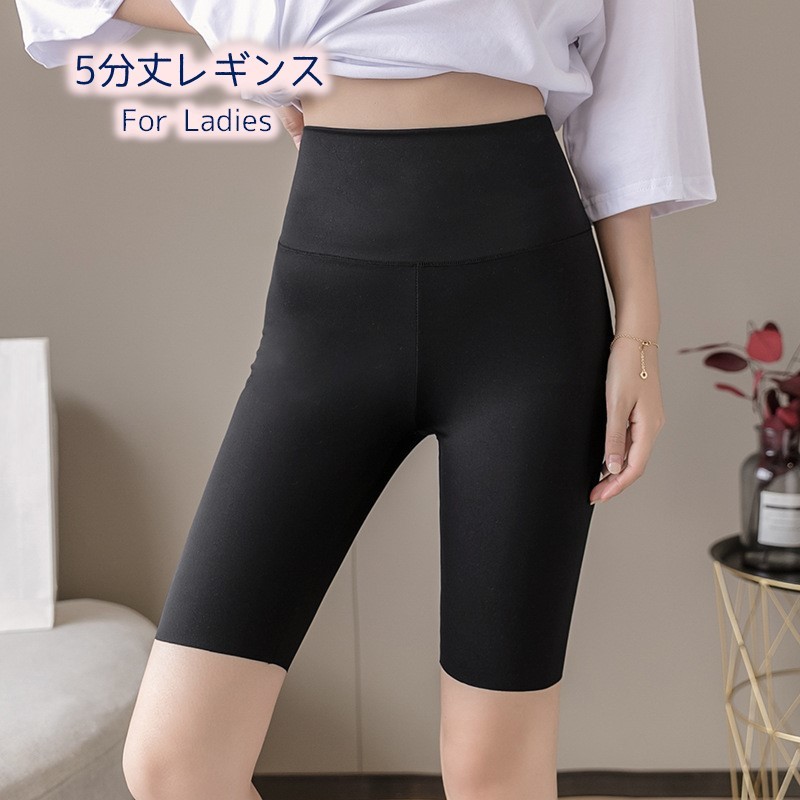 レギンス スパッツ 5分丈 膝上丈 ショート丈 インナーパンツ レディース 女性 ブラック シンプル オーバーパンツ スポーツ ジム ヨガ フィットネ